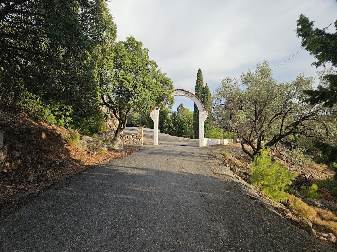 After a good hour of running I was winding my way up a circuitous mountain road, with bright colours starting to shine in the light of a rising Aegean sun. The pine forest, freshly rain-soaked, was pungent and the air was incredible - so fresh it felt nourishing and engergising. At last around a corner I came to the end of the road, the arch of the Kamiri Monastery. The place was deserted, but clearly well looked-after. I had time to stop there for a few minutes and meditate in the silence. The atmosphere was amazing - hard to tell if that came from the monastery and its centuries of devotion, or just the location in the silent and deserted hills, or perhaps both?