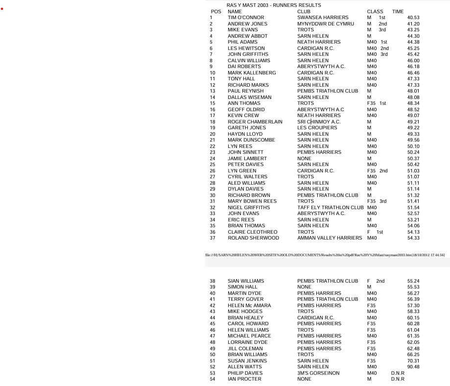 The next time we came back as a team and I have blogged that here - Ray Y Mast 2005. I transcended my results of the previous 2 years with a 47.55 and 10th place. I was 37 and this was the start of some good years of running for me. That year I did a 24 hour race and got a 10k PB too.